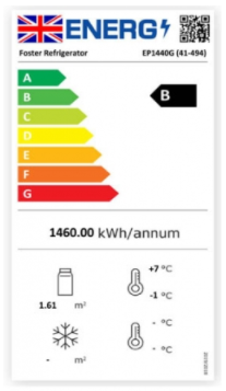 The Foster EP1440G/41-494 EcoPro G3 Upright Glass Door Refrigerated Cabinet combines impressive 1350-litre storage capacity with sleek stainless steel design, offering a professional display for all your chilled products. Equipped with 8 GN2/1 nylon-coated shelves, this double-door unit ensures optimal storage flexibility. The cabinet features a Fuzzy Logic II touch control panel with an LED temperature display and audible hi/lo alarm, allowing precise temperature management between +1°C to +4°C. With an ISO Climate Class 5 rating, it operates efficiently in ambient temperatures up to 43°C, while the stayclear condenser reduces dust build-up, ensuring reliability and low maintenance. Lockable doors, castors for mobility, and a 230V power supply make it an ideal addition to any commercial kitchen seeking efficiency, durability, and value.