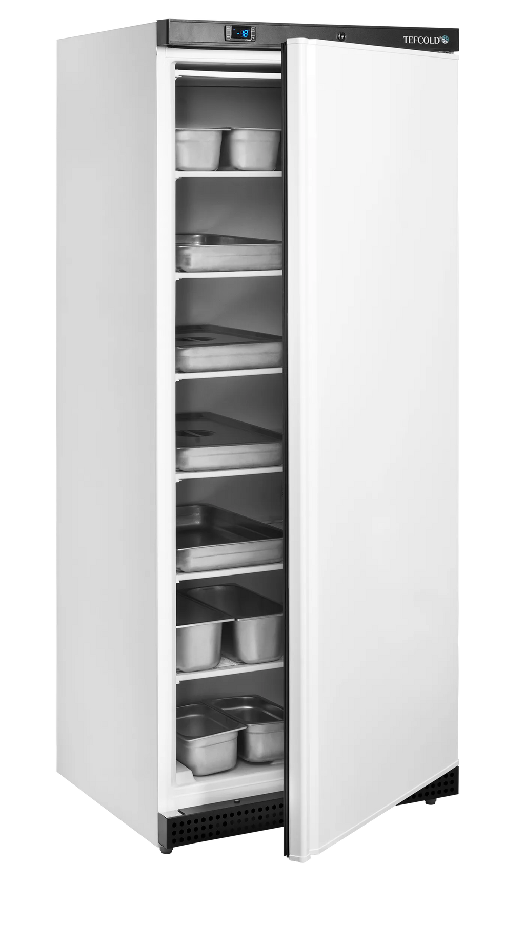 The UF600 Upright Freezer is a high-capacity commercial freezing solution designed for professional kitchens, catering businesses, and food service operations. With a generous 605-litre gross capacity and reliable temperature control ranging from -24°C to -10°C, it ensures safe and consistent storage of frozen goods. The unit features a durable white exterior with a hygienic white ABS interior, six heavy-duty GN2/1 fixed freezing shelves, and a maximum shelf load of 110 kg/m² for secure storage of bulk products. Its electronic thermostat with digital temperature display allows precise control, while the integrated handle and reversible solid door provide convenience and flexibility in installation. Built with static cooling and manual defrost functionality, the UF600 operates efficiently using R600a refrigerant and 300W power input, making it a dependable and energy-conscious choice for commercial environments.